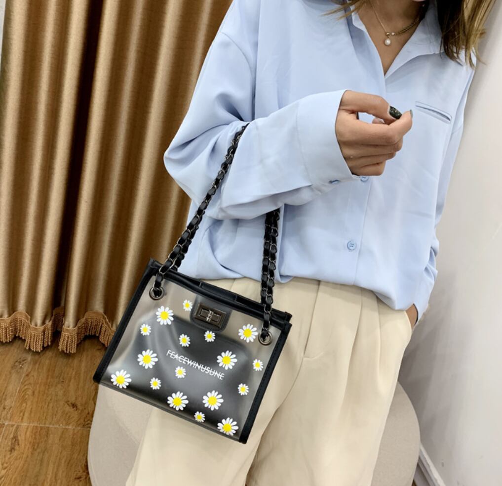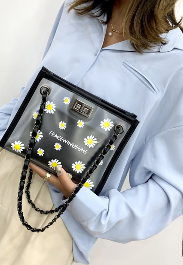 レディース 半透明 ミニショルダーバッグ ハンドバッグ PVC チェーン