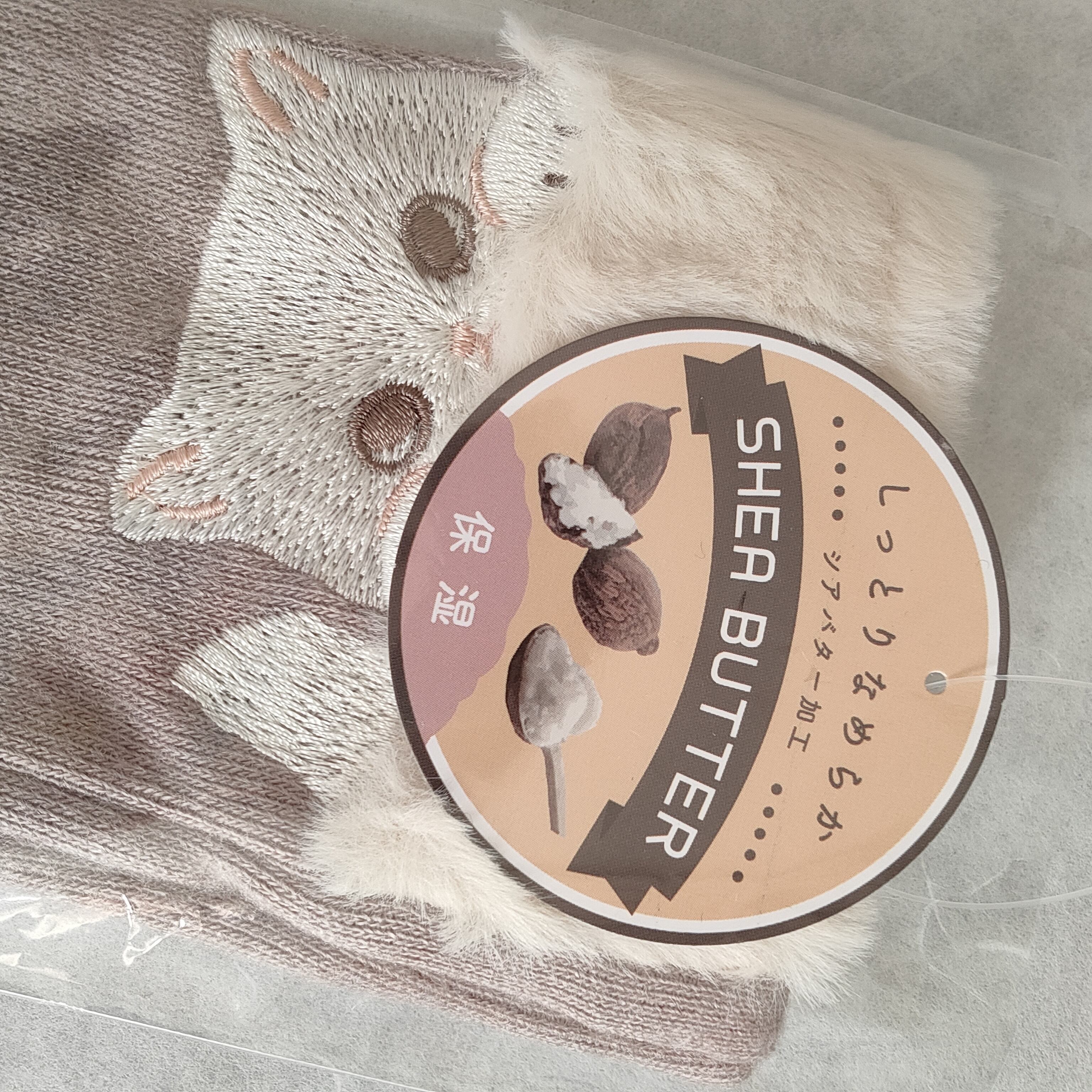 ★保湿「シアバター加工」ねこ刺繍ジャージ手袋★