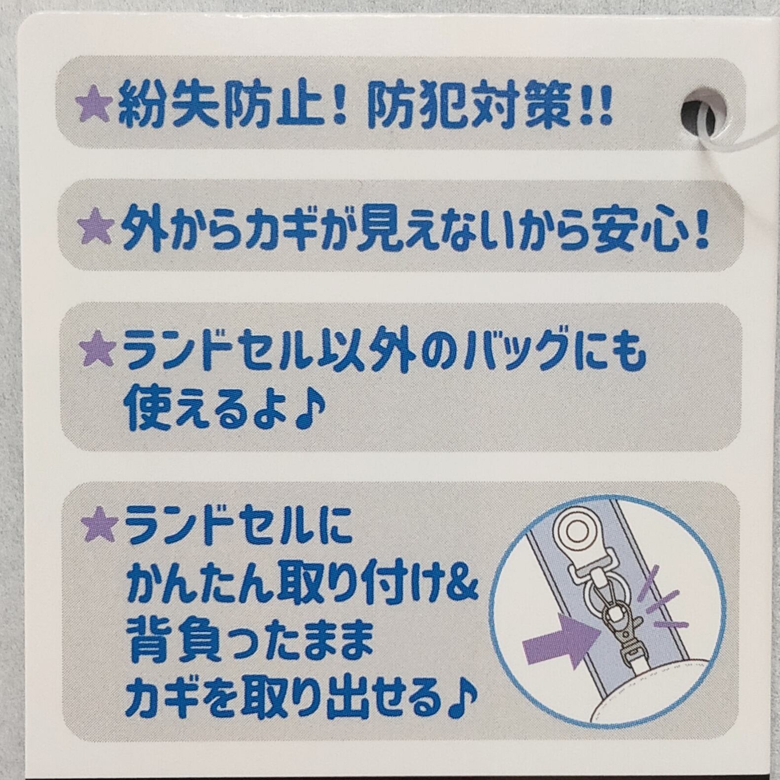 リール付きなのでランドセルやカバンに付けたまま鍵を使用することが出来ます。