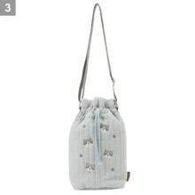 軽くて肌触りの良いキルト素材に、にゃんこの刺繍がポイント♪ふわっとした生地と淡いカラーで使いやすく、柔らかい雰囲気がかわいいボトルショルダーが登場。500mlサイズのペットボトルやステンレスボトル、ペンライトなども入るラウンド型の巾着ショルダーです。飲み物の持ち運び時や推し活など、工夫によって様々な使い方ができます。お子様の水筒カバーとしても◎